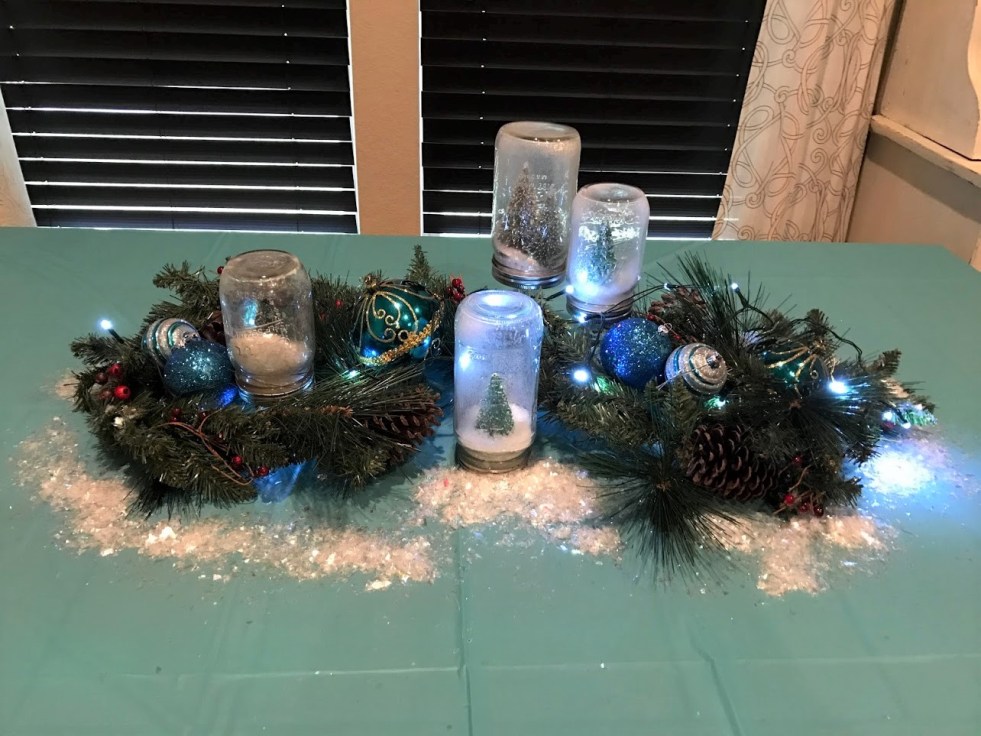 Check back a few posts to see how you can make these magical snow globes I used in my table centerpiece!