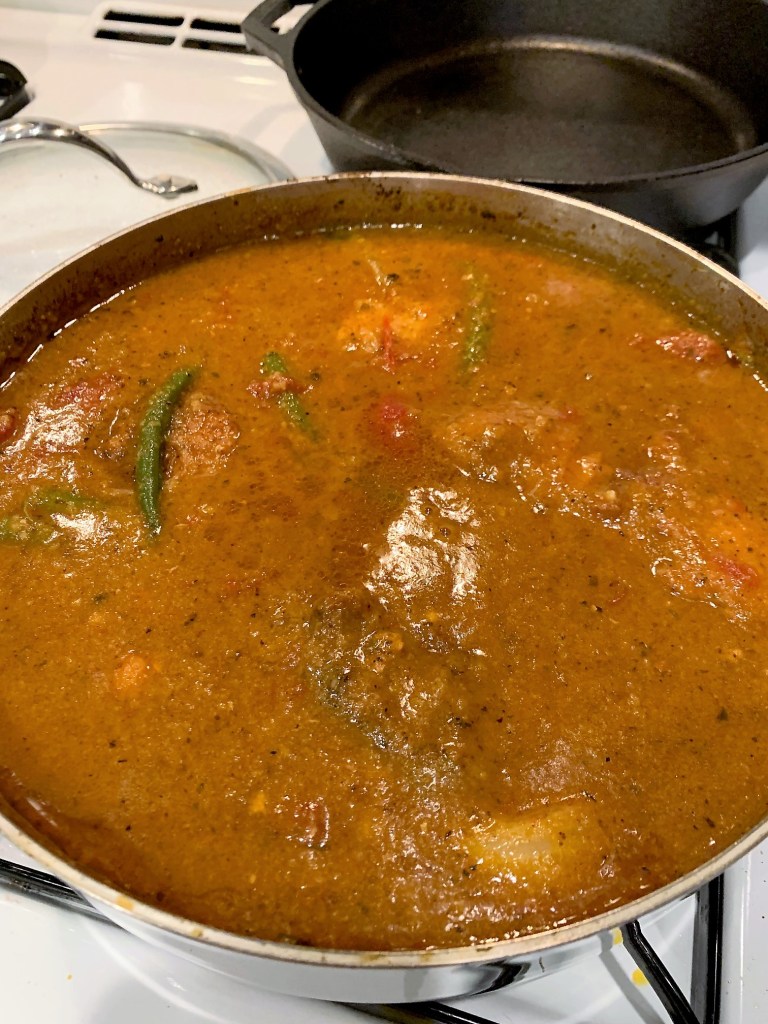 After the meatballs were done in the oven, I added them to the pan of sauce & stirred in the remaining sauce, and a 1/4 cup of milk to help loosen the sauce and get the meatballs coated.