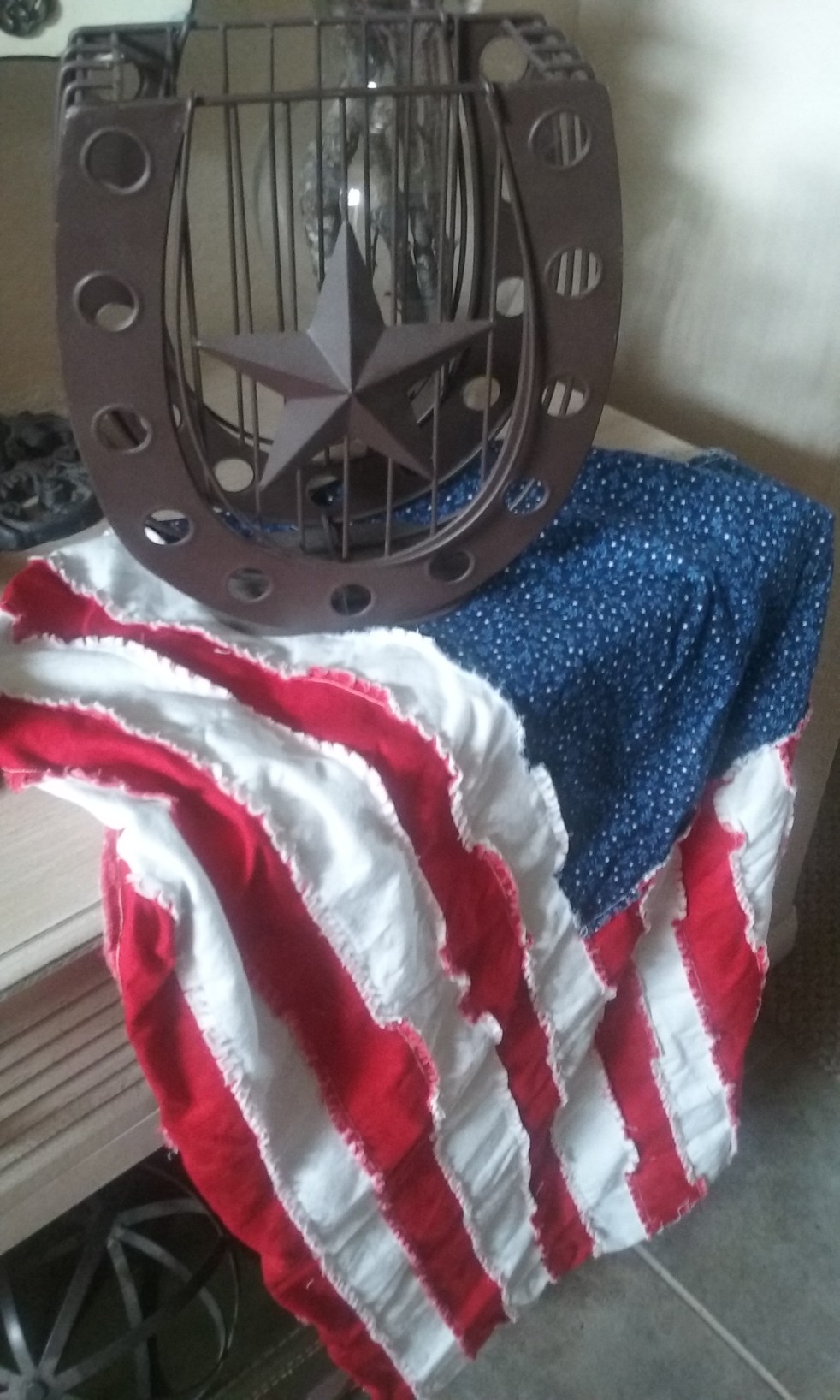 This is called a rag quilt because the seams are sewn wrong sides together so the raw edges are showing. After several washes and tumbles in the dryer, the edges begin to fray or get “ragged” out. I found some leftover red, white, and blue fabric in my stash and I thought it would be perfect for this project. However, you can use what ever color/tone of fabric you like. It’s quit simple and easy to make and requires some basic sewing/quilting skills.